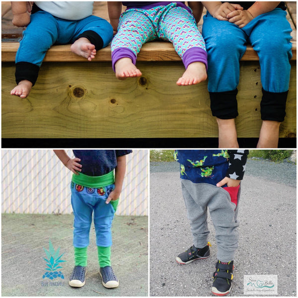Little Kids Color Blocked Grow With Me Drop Crotch Joggers - PDF Apple Tree Sewing Pattern