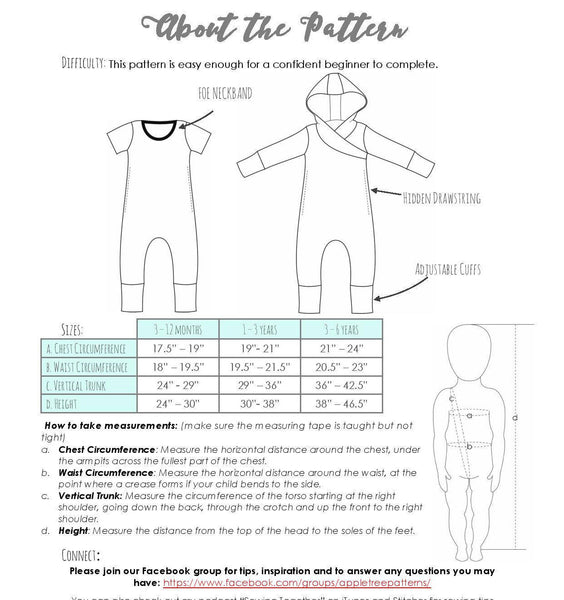 Little Kids Grow On Coverall Style Romper A4 SIZED PAPER - PDF Apple Tree Sewing Pattern
