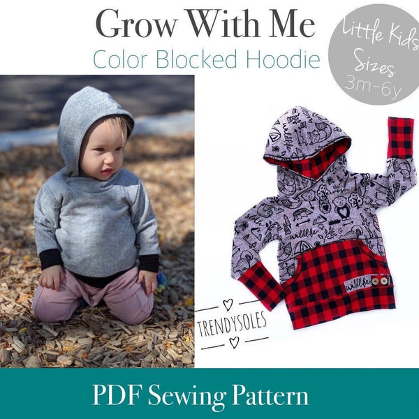 Little Kids Color Blocked Hoodie Grow With Me Hoodie - PDF Apple Tree Sewing Pattern